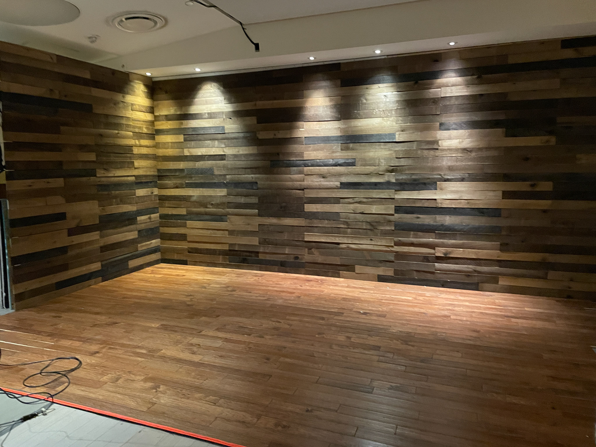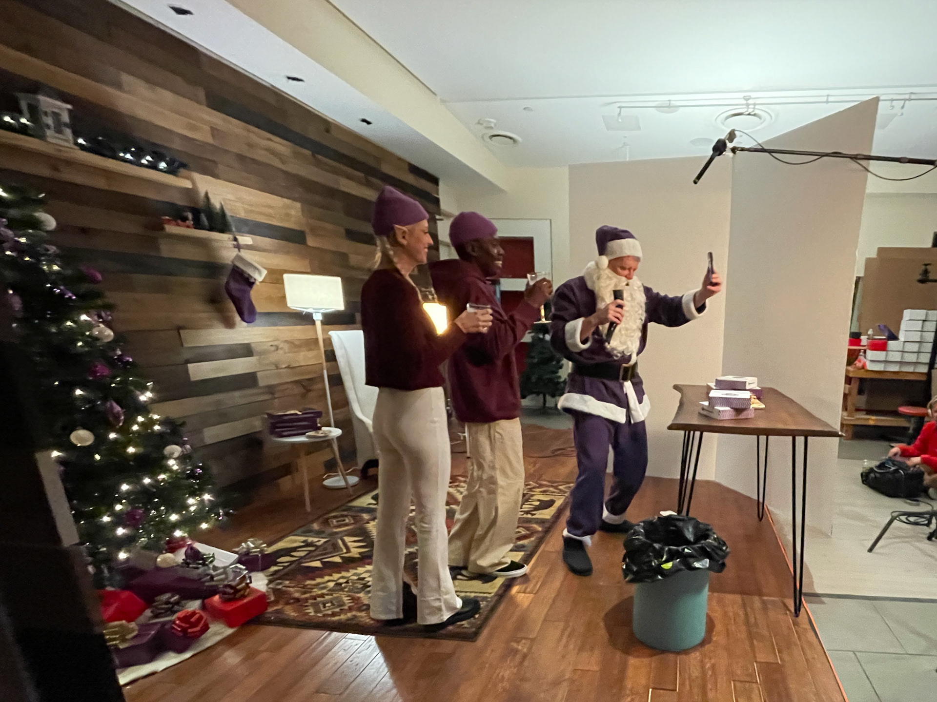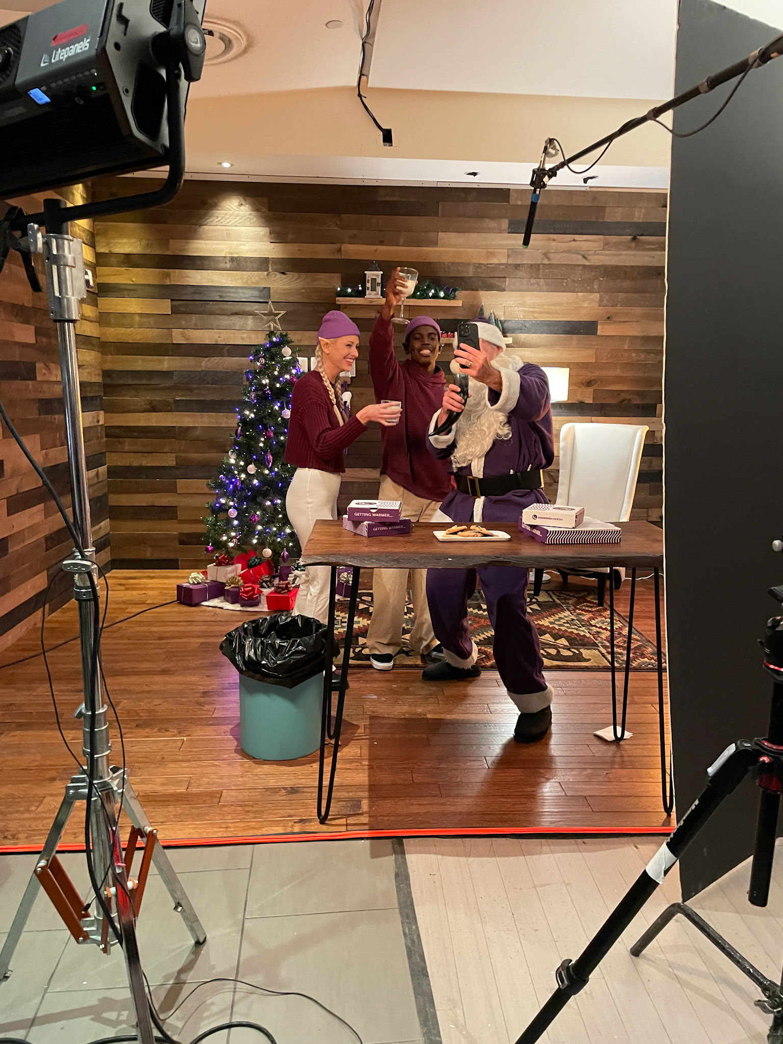 This Holiday campaign features a custom wood cabin set that we built in a closed beauty salon